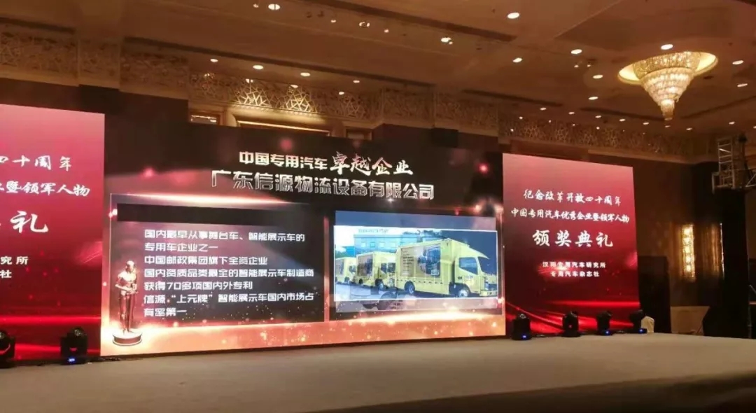 改革開放40年來,我國專用汽車行業經歷了從小到大、由弱漸強的發展過程,在產企業數也由70年代末的百余家發展到2017年的1094家。在中國專用汽車行業首次大型評選活動“紀念改革開放40周年‘中國專用汽車優秀企業暨領軍人物’評選活動”中,信源憑借在智能舞臺展示車領域的影響力和市場競爭力,脫穎而出,榮獲“中國專用汽車卓越企業獎”。
