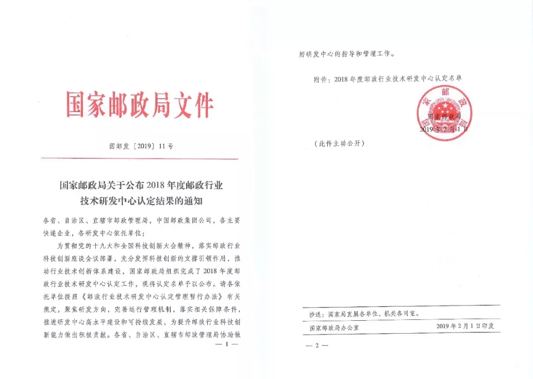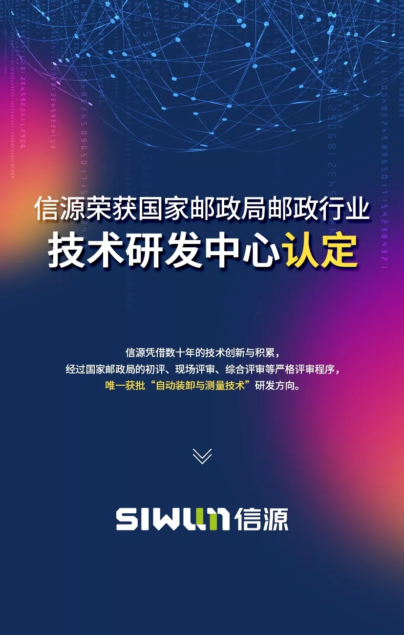 信源榮獲國家郵政局郵政行業(yè)技術(shù)研發(fā)中心認(rèn)定