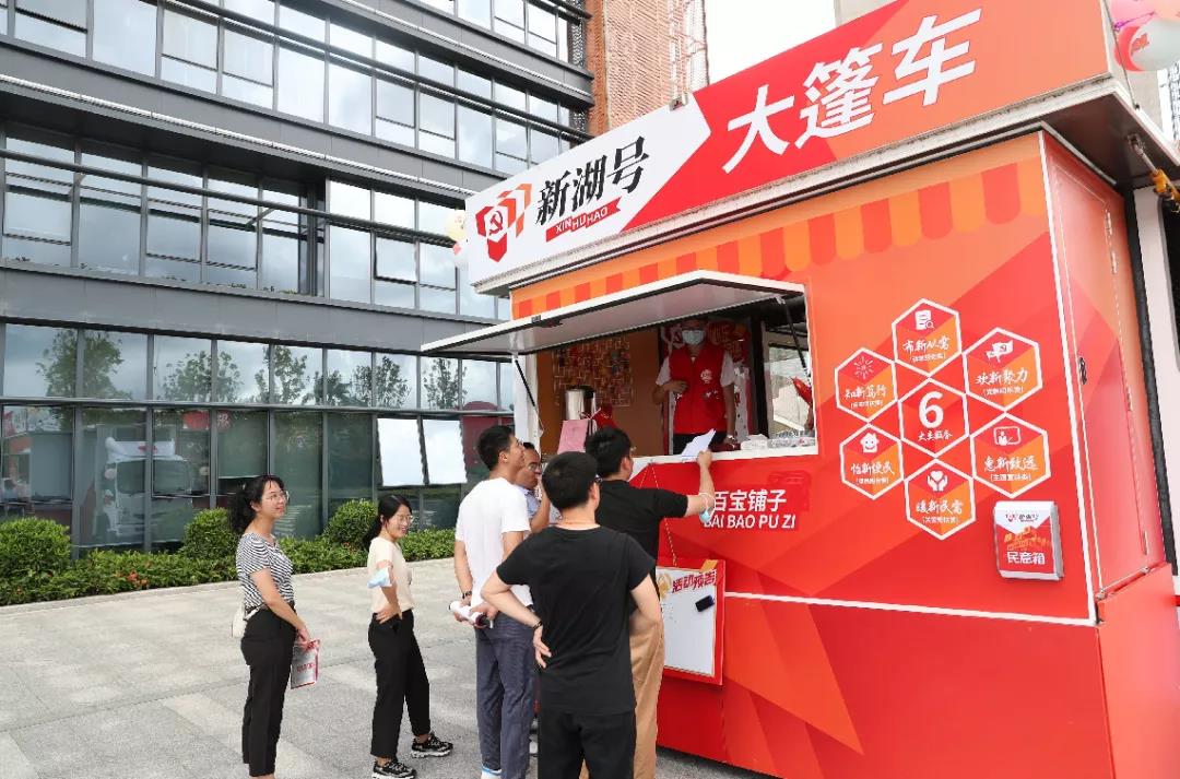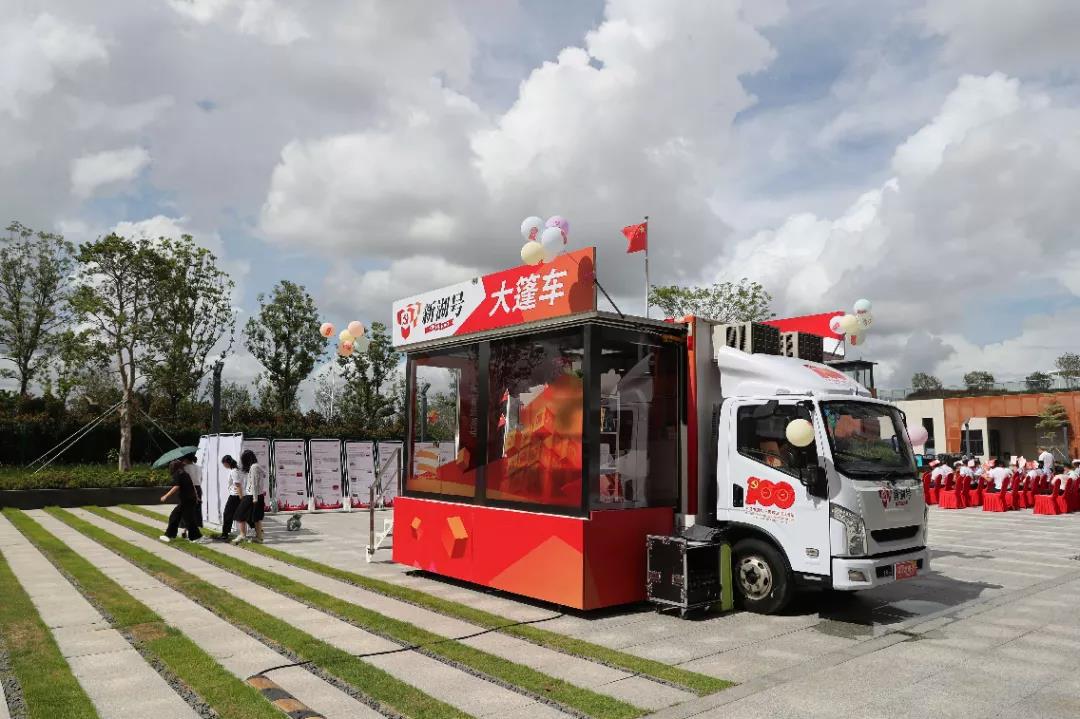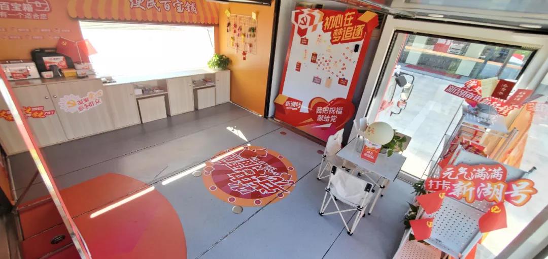 新湖號(hào)大篷車承載百寶鋪?zhàn)印⑺汲毕囵^、黨史看臺(tái)、新湖之窗四大功能區(qū)域