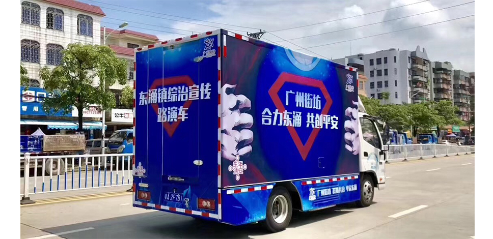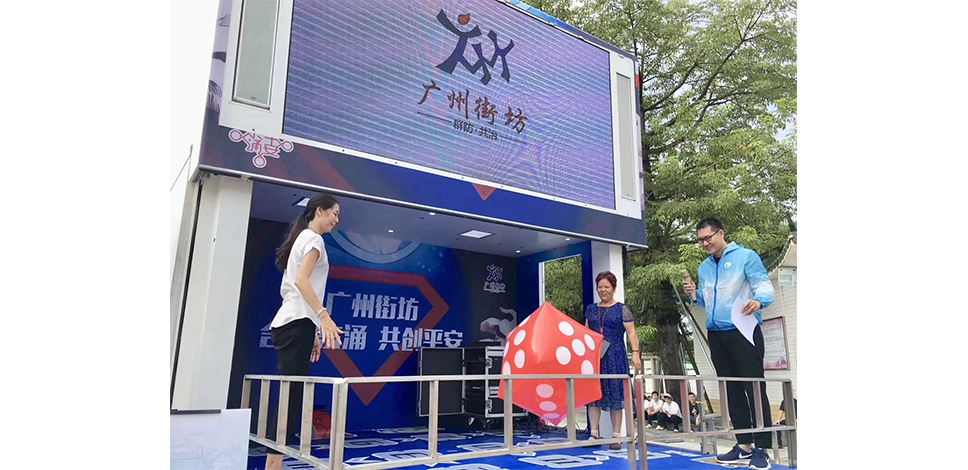 創(chuàng)意方案:廣州南沙東涌鎮(zhèn)“廣州街坊”打造的宣傳路演車,集LED大屏宣傳片播放,舞臺“趣味問答跳跳棋”和“咨詢攤位”等功能于一身,在鎮(zhèn)內(nèi)開展為期一個月的“掃黑除惡”、“平安創(chuàng)建”、“防范邪教”、“拒毒防毒”等各類宣傳工作。