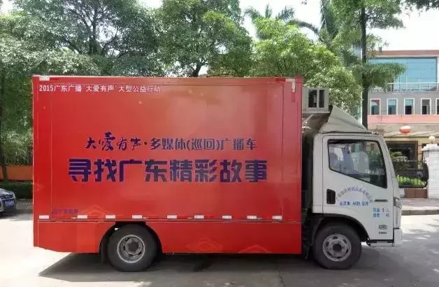 “大愛有聲”是廣東廣播電視臺于2013年創立的大型公益行動品牌,以“大愛”為行動的主題,以“有聲”為行動的特色,踐行和傳播社會主義核心價值觀,弘揚社會正能量。2015年,珠江經濟臺創新思維,實踐“廣播+”理念,在全省媒體中率先推出多媒體廣播車的傳播形式,由廣東信源研發制造的集舞臺演出、新聞訪談、節目制作及跨媒體直播為一體的多媒體廣播車首次亮相2015“大愛有聲”公益活動中,在全省巡回,尋訪精彩故事,傳播公益精神。