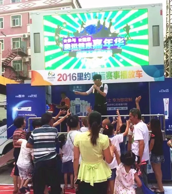 為奧運加油,為中國加油!近日,由國家頂尖路演車改裝專家廣東信源攜手專業護理品牌康博士打造的“2016里約奧運賽事播放車”,承載著健康、快樂、活力駛入各級城市,與各位奧運迷齊聚,共同享受這場世界級的體育盛宴。