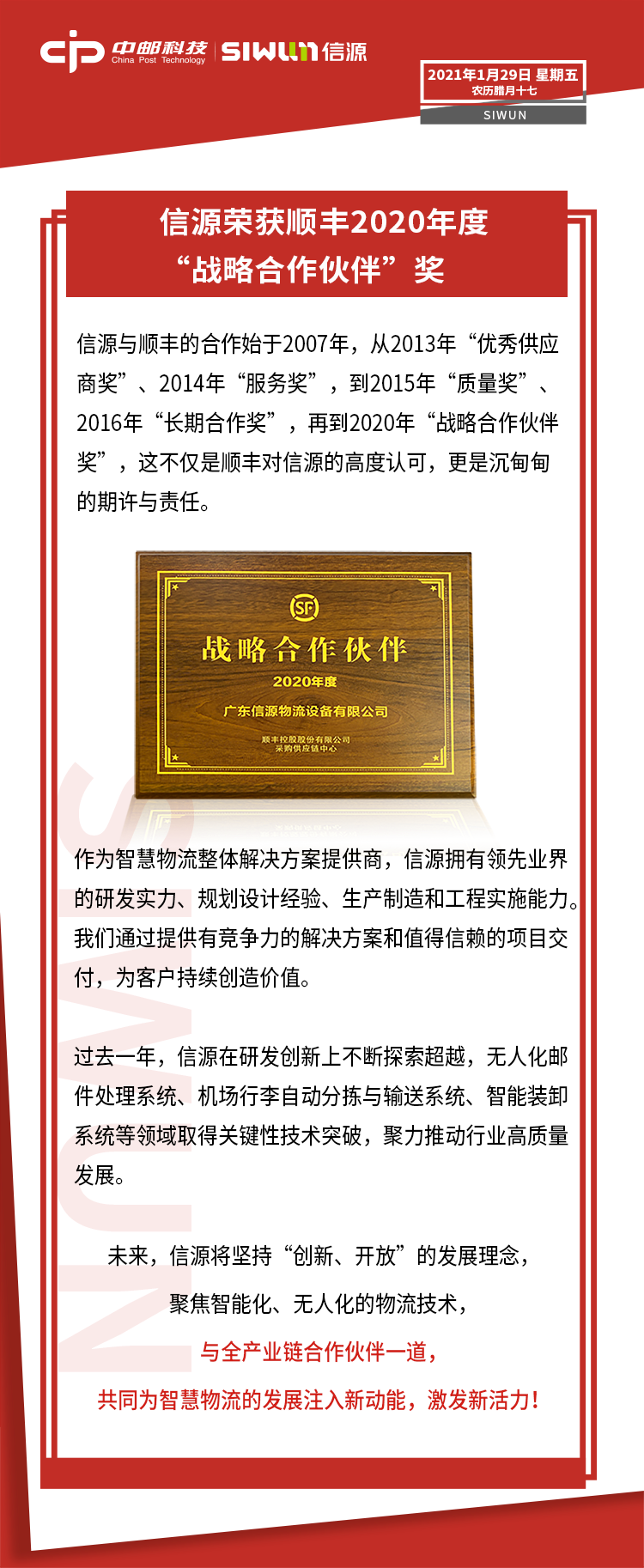 Siwun won SF Express 2020 "Strategic Partner" Award